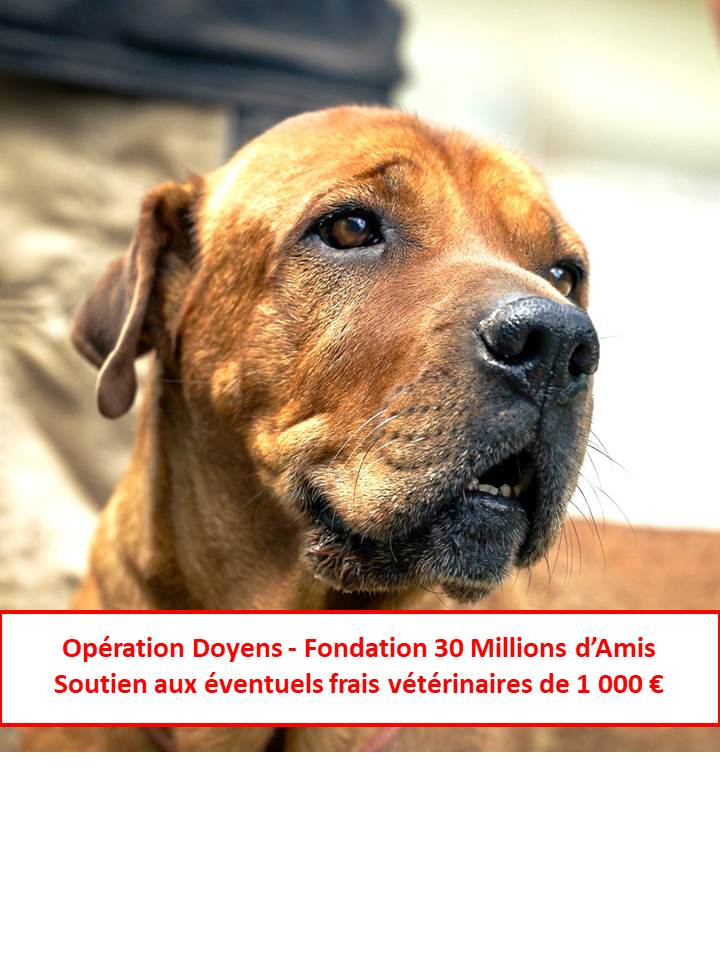 Elle a plus de 10 ans, elle est donc éligible à l’Opération Doyen de la Fondation 30 Millions d’Amis, ce qui donne droit à ses adoptants à une aide de 1 000 € pour d’éventuels frais vétérinaires.