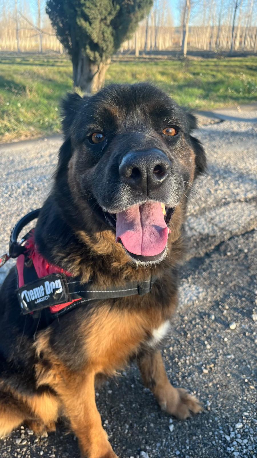 A cause de son passé marqué par la maltraitance, elle est méfiante au premier abord. Mais elle se détend rapidement avec quelques caresses ou friandises. Elle est pleine d’énergie. Elle aura besoin d’adoptants patients et engagés.