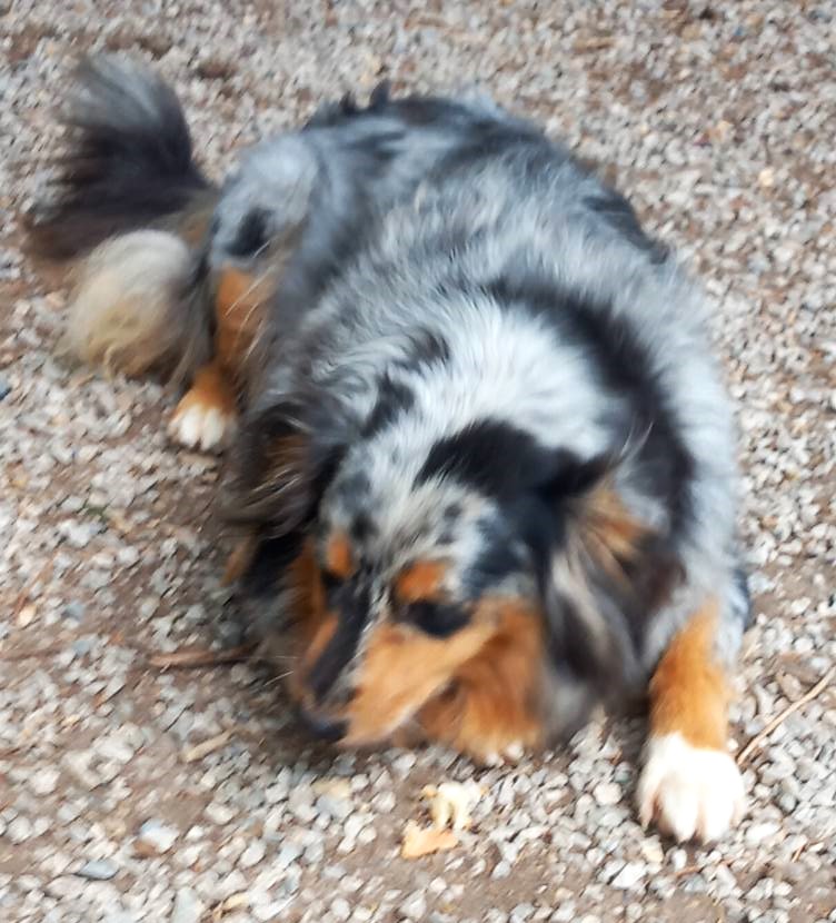 Riley est très sociable avec ses congénères. Elle provient d’un élevage qui a fermé.